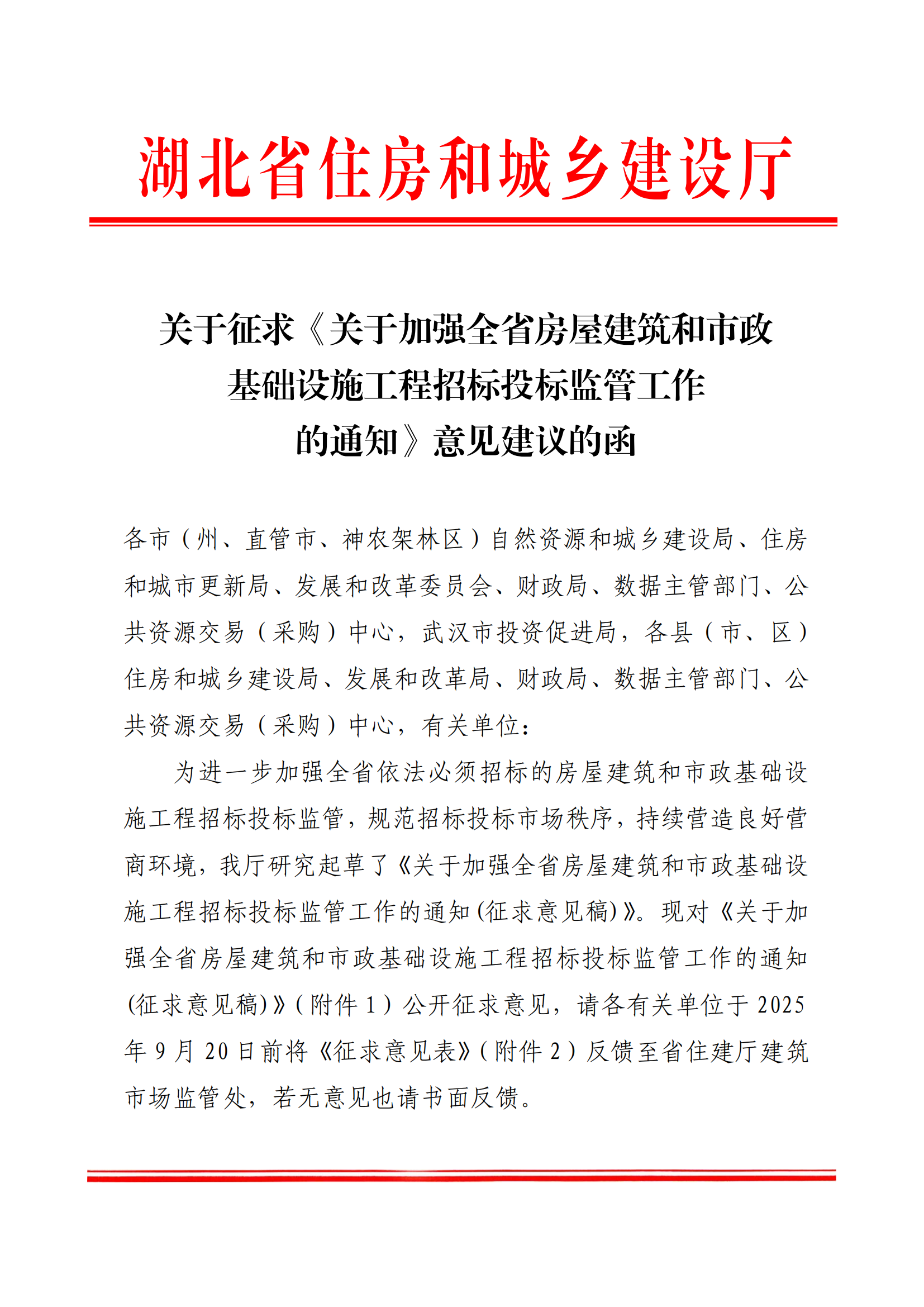 关于征求《关于加强全省房屋建筑和市政基础设施工程招标投标监管工作 的通知》意见建议的函