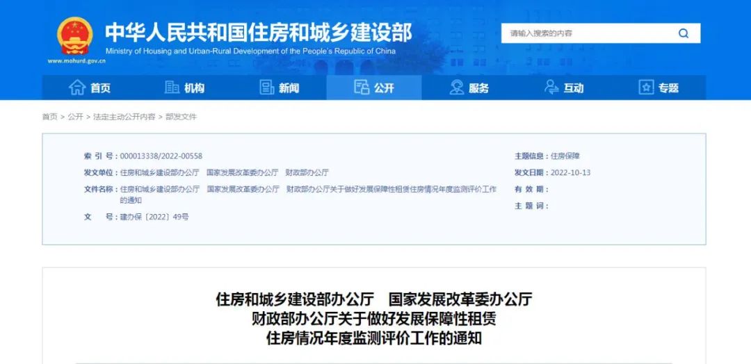 住房和城乡建设部等三部门对保障性租赁住房发展情况实施年度监测评价